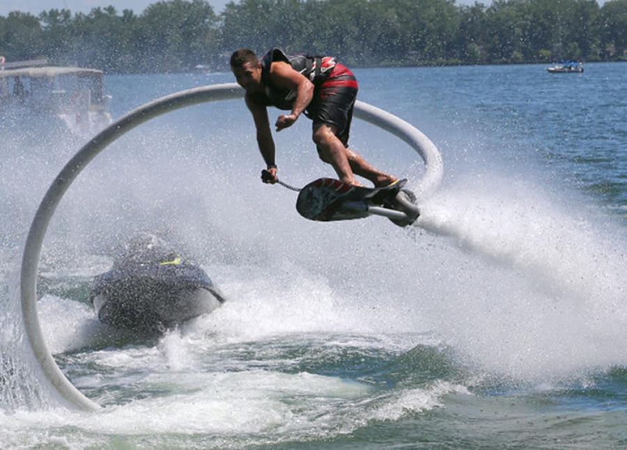 How would you like to hover above a lake or a lagoon? Or to do summersaults in the air? Or to dive in and out of the surf as effortlessly as a dolphin? Well then, you have to take a look at this video. The hover board is part skateboard, part jetpack – and looks like pure blast! If you are interested in trying one, get in line behind me!