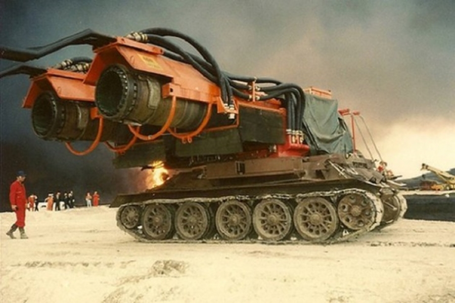 In 1991, after Saddam Hussein’s army invaded Kuwait, it left behind blazing oil fires which were extremely difficult to put out. Thinking laterally, Hungarian engineers rigged Mig-21 fighter jet engines on a World War II Russian tank. The resulting monster, called ‘Big Wind’, shoots out 8,000 gallons of water per minute, at 770 miles per hour. Fire has no chance.